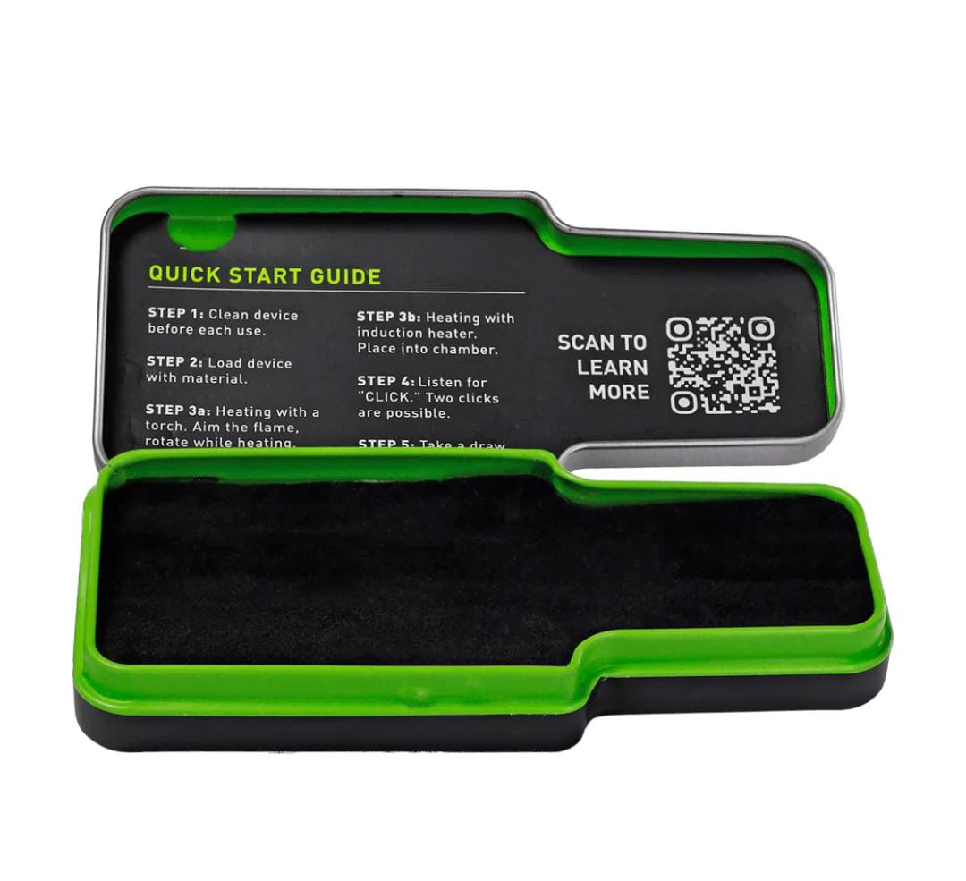 Diseñado para la portabilidad, el G3 viene con un elegante encendedor Dynatorch dentro de un estuche metálico DynaVap para transportar fácilmente este kit.